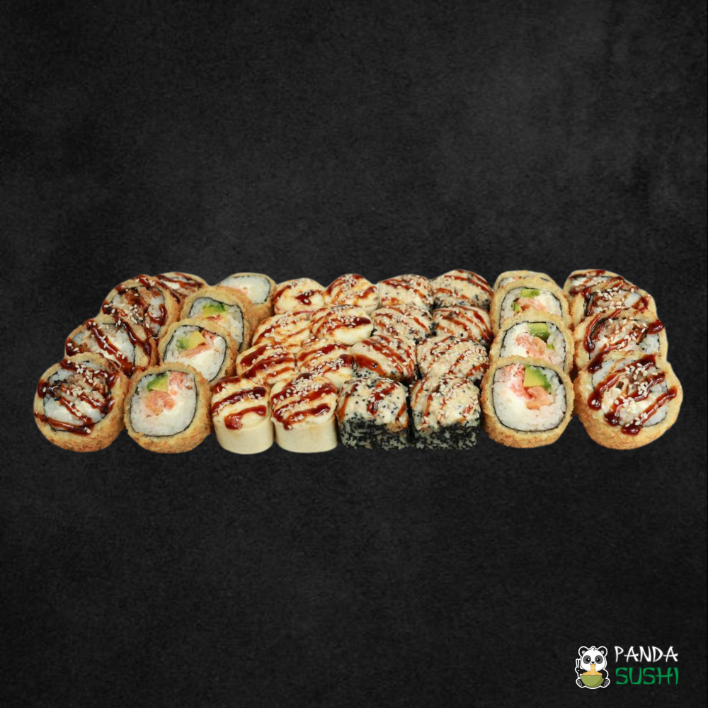 запеченный ролл унаги, запеченный ролл тортилья фиш, темпура филадельфия, темпура с угрем. В комплекте: 3 соевых соуса (30 мл), 30 гр имбиря, 15гр васаби.